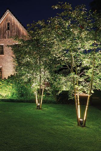 Een mooi afgewerkte buitenspot met een vaste voet, voor het gericht uitlichten. Met deze spot kunnen grotere objecten of bomen met een aangenaam warm licht worden uitgelicht. De spot heeft een aluminium behuizing met een hoogwaardige poedercoating en voorzien van 3 ledlampen 24 Volt, totaal 4,5 Watt, met een lichtbereik van 1800 cm en een straalhoek van 60 graden. Deze buitenspot aan te sluiten op het 24 Volt kabelsysteem en transformator.
