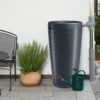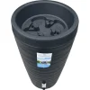 Als regenwateropslag en tevens als plantenbak. Buitenzijde met strakke lijnen wat een modern uiterlijk geeft. Het overtollige regenwater in de plantenbak loopt direct weer de regenton in. De regenton heeft twee aansluitingen van 3/4 inch (3/4") voor een kraan. Een snelloopkraan wordt meegeleverd. Eventuele andere passende kranen voor deze regenton en een vulautomaat los bij te bestellen.