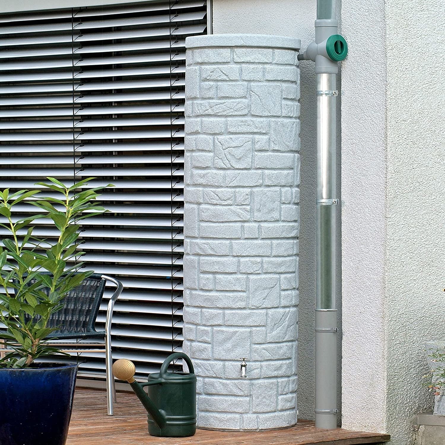 Regenton in de weergave van natuurstenen zuil of een kleine stenen fontein, in combinatie met een meegeleverde plantenbak wordt dit mooi opgenomen in uw tuin, in elk seizoen.