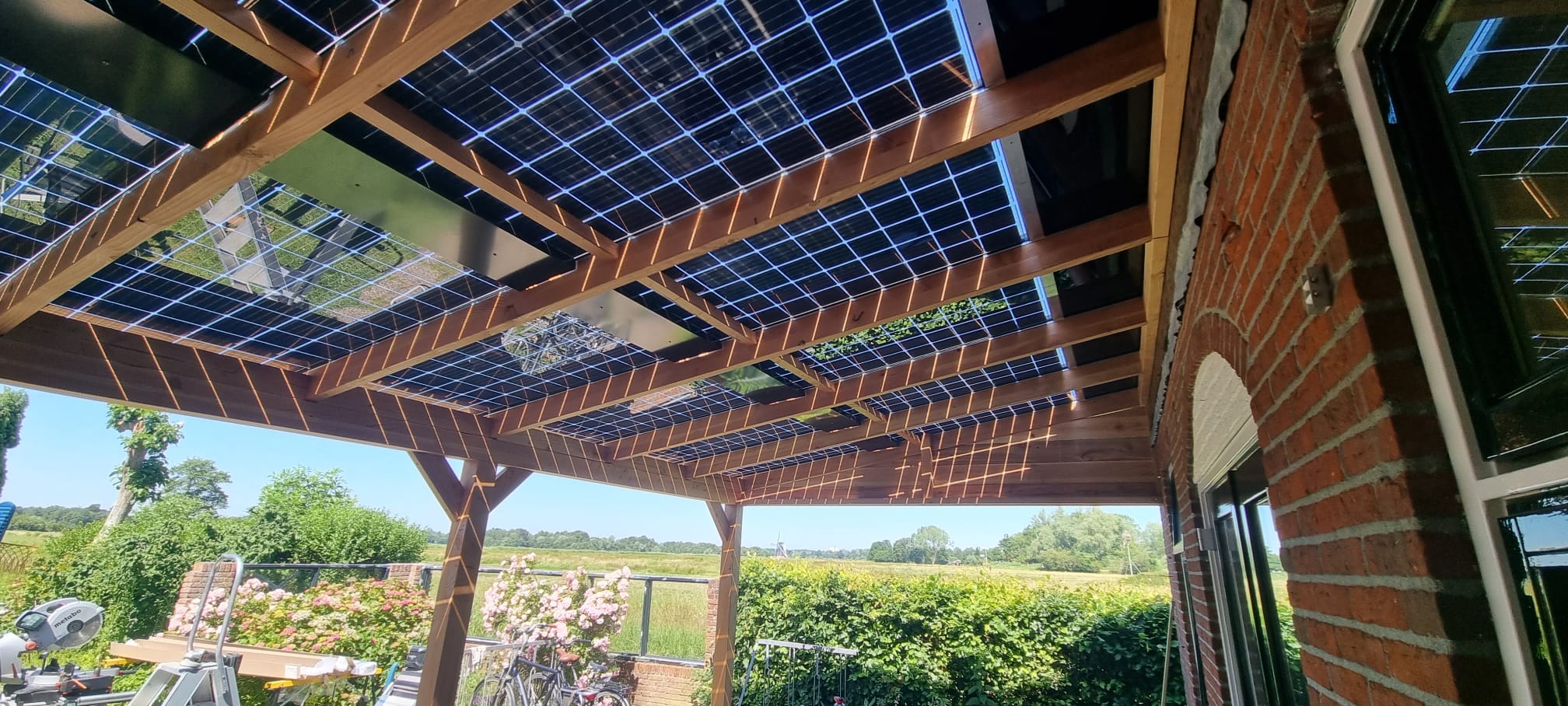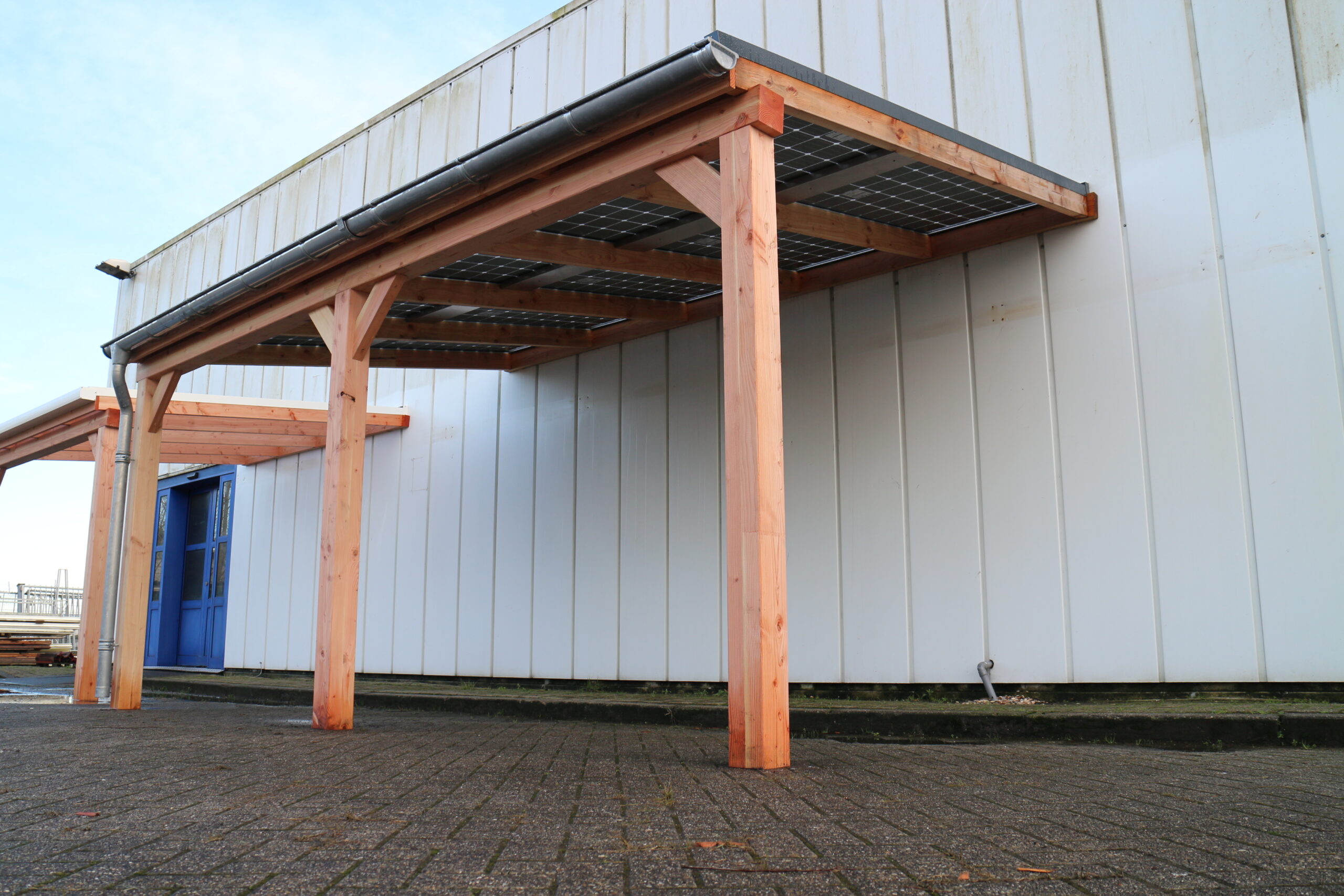 Vanuit de fabriek wordt de solar veranda, carport of overkapping compleet geleverd met de gehele houten en voorbereide constructie met de zonnepanelen. Deze is beschikbaar in vele standaardafmetingen met 140x140 staanders en dwarsliggers van douglas hout.