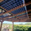 Een prachtige en kwalitatief een hoogwaardige houten veranda met een dak van zonnepanelen voor het opwekken van duurzame energie.